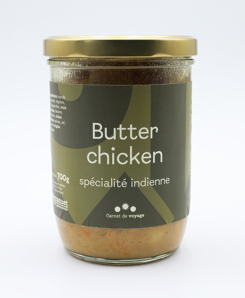 Ingrédients : Viande de poulet , oignons, ail, gingembre, noix de cajou, beurre, tomates, crème fraîche, épices, sel, poivre