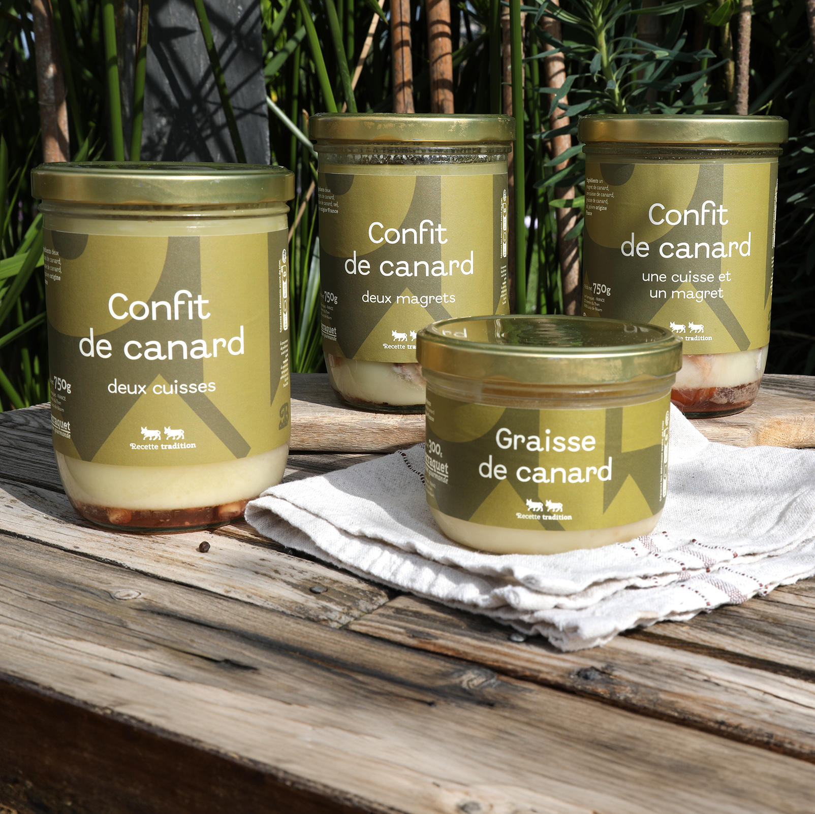 Plongez dans la tradition culinaire du Sud-Ouest avec nos conserves artisanales de confit de canard. Préparé selon les méthodes ancestrales, ce mets savoureux allie tendreté et intensité, pour une expérience gustative unique.Chaque morceau est lentement confit dans sa graisse, révélant des arômes riches et une texture fondante. Accompagné de pommes de terre sautées, de haricots tarbais ou simplement d’une salade croquante, ce plat incarne la convivialité des grandes tablées gasconnes.