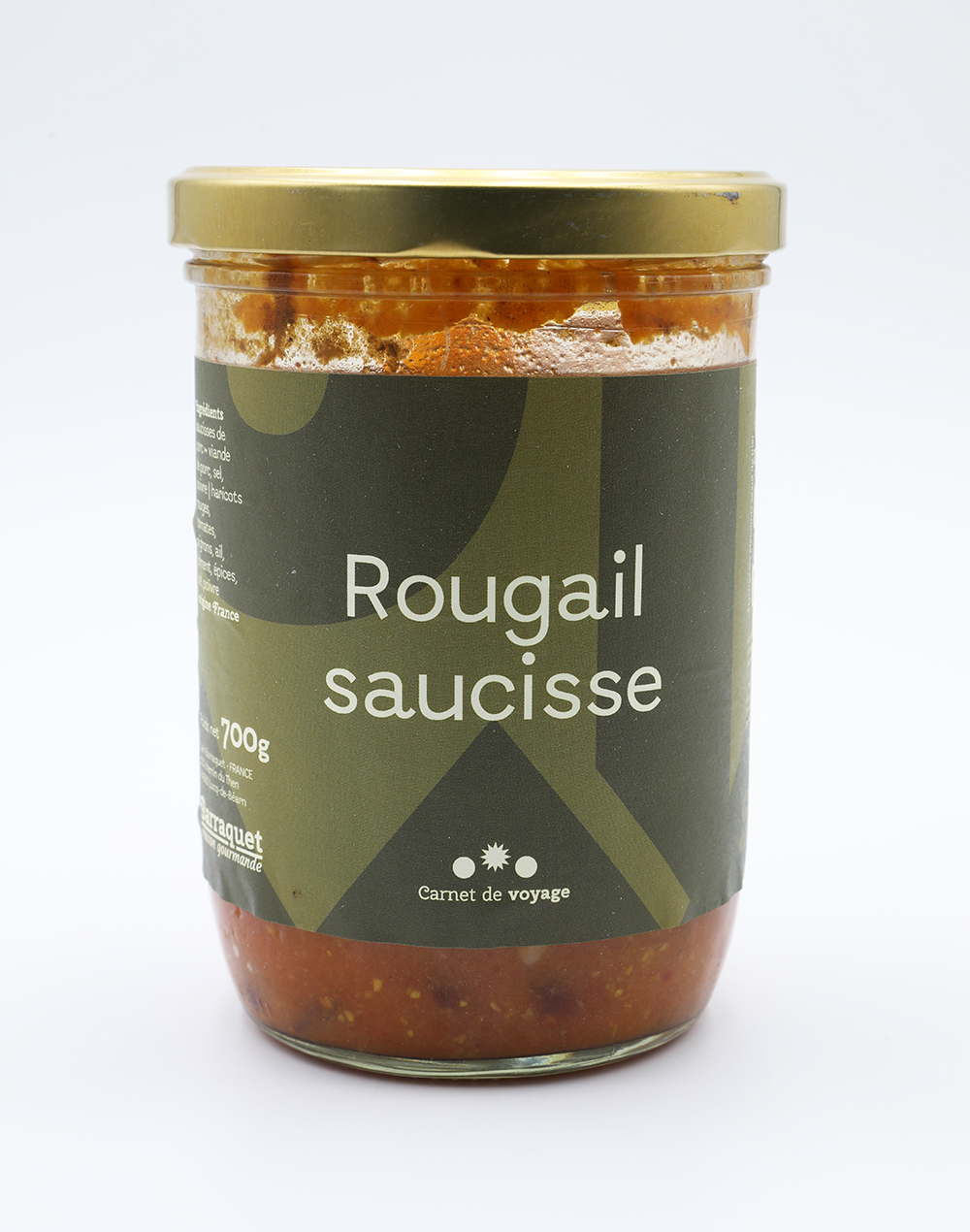 Ingrédients : Saucisses de porc (viande de porc, sel, poivre), haricots rouges, tomates, oignons, ail, piment, épices, sel, poivre